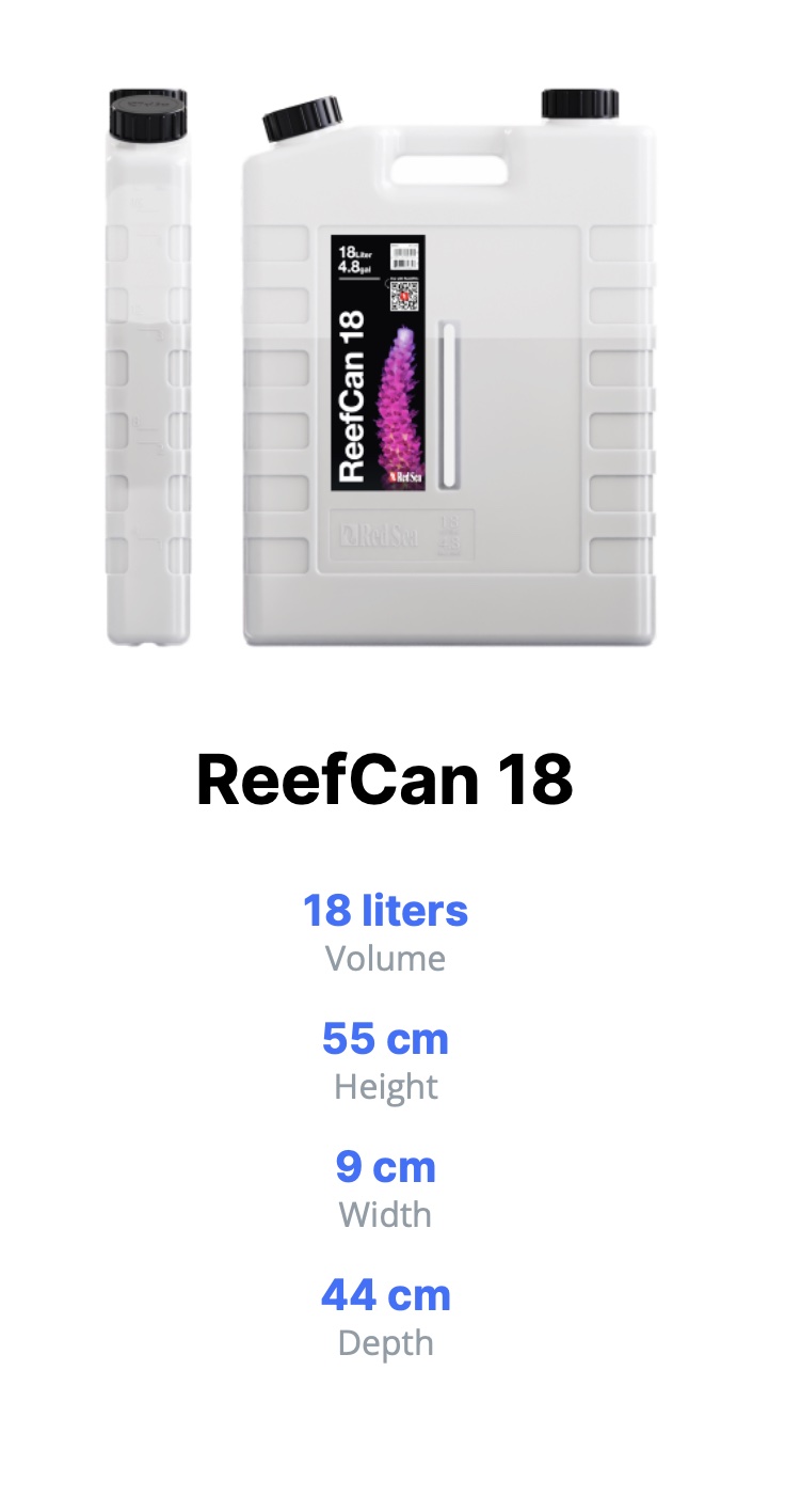 ReefCan es un recipiente diseñado para maximizar el uso del espacio vertical en el gabinete de su acuario, proporcionando una solución elegante y práctica de almacenamiento de agua por ósmosis inversa. Gracias a su forma delgada y alta, cabe fácilmente junto a tu decantador, incluso en los espacios más reducidos. El ReefCan está fabricado en plástico transparente con una escala graduada , que permite controlar el nivel del agua. Con aberturas especialmente ubicadas para facilitar el llenado y la gestión de tuberías.