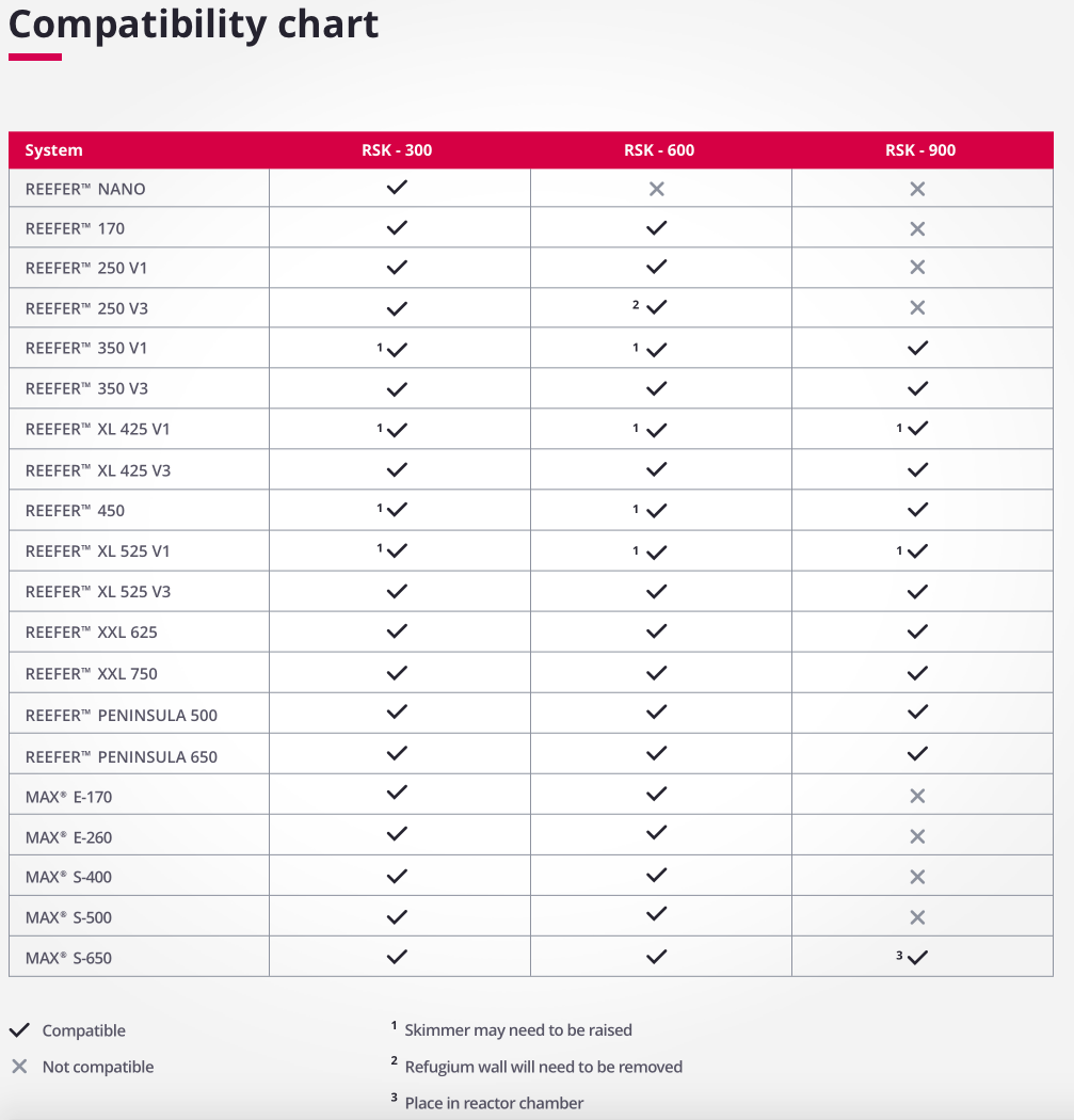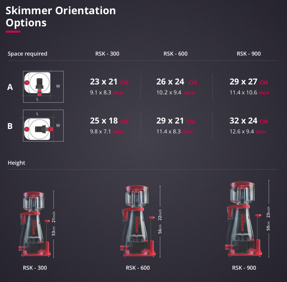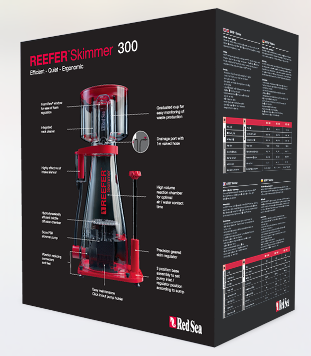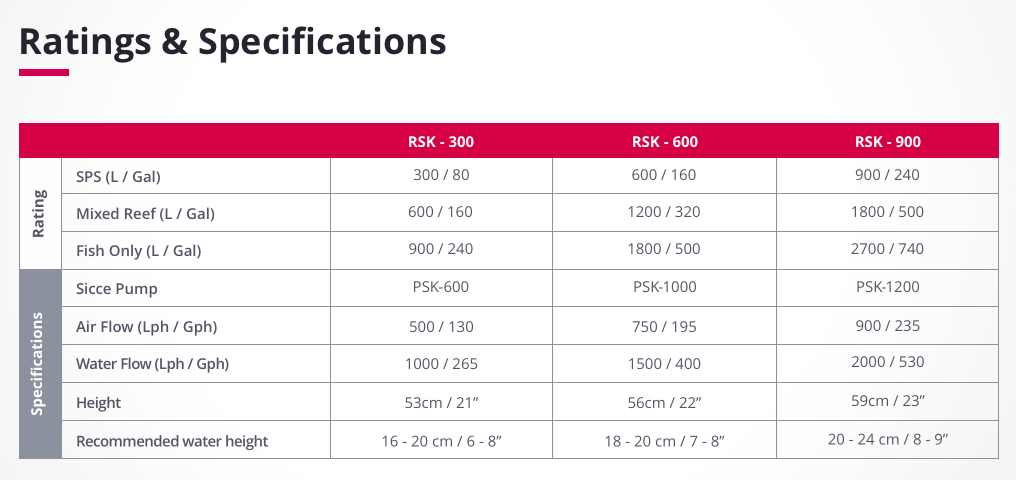 El skimmer ReefClean RSK 300 de Red Sea está diseñado para acuarios de hasta 300 litros si es de SPS, hasta 600 litros si es de arrecife mixto y hasta 900 litros si es de sólo peces.